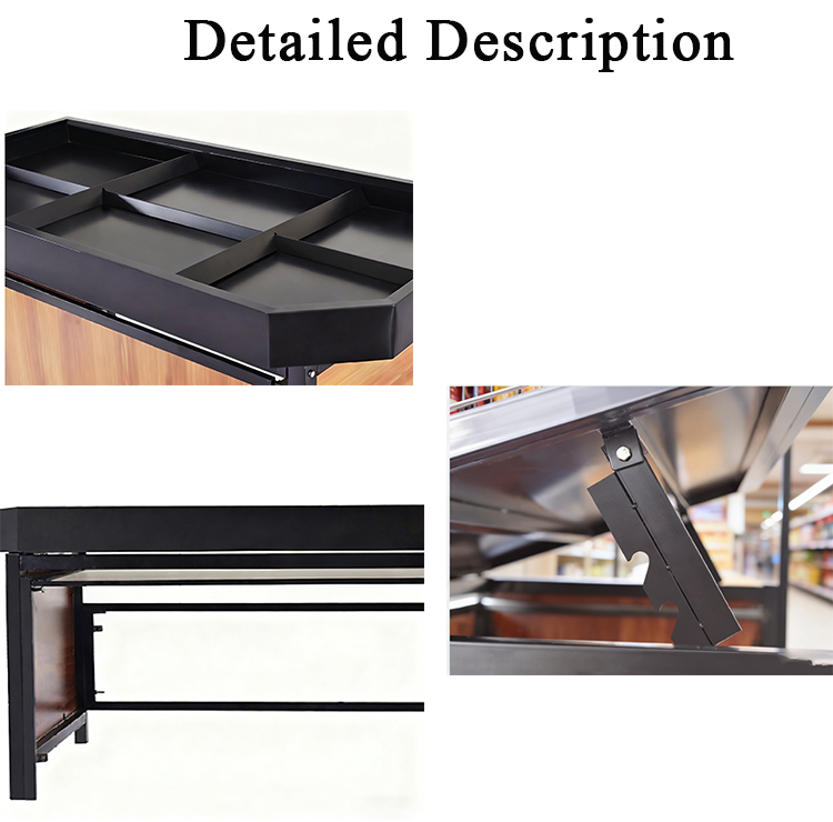 The corrosion-resistant and durable structure adapts to the humid environment of fresh food markets. The raised baffles and anti-slip laminates prevent fruits from falling during the busy peak hours. The easy assembly and disassembly feature is convenient for merchants to clean and rearrange the stall layout, improving operational efficiency.
